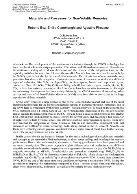 Read Materials and Processes for Nonvolatile Memories Epub By Click Button. Materials and Processes for Nonvolatile Memories it’s easy to recommend a new book category such as Novel, journal, comic, magazin, ect. You see it and you just know that the designer is also an author and understands the challenges involved with having a good book. You can easy klick for detailing book and you can read it online, even you can download it