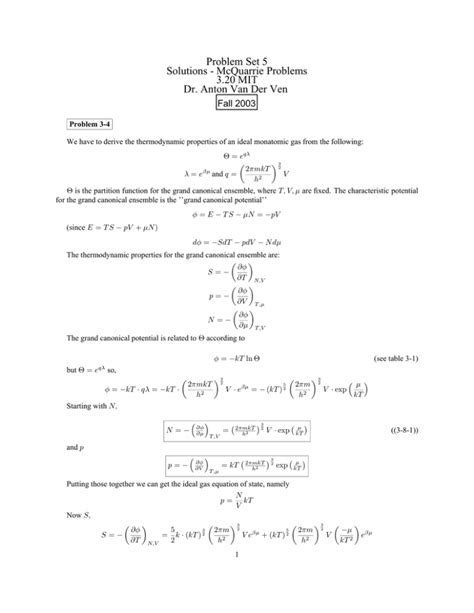 Read Problem Set 5 Solutions Mcquarrie Problems 3 20 Mit Dr Kindle Editon